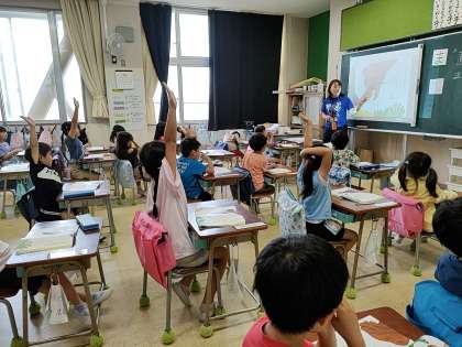 1年生の1つのクラスでは、国語で「くまさんとありさんのごあいさつ」というお話を学習していました。