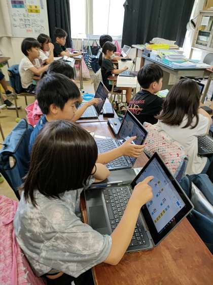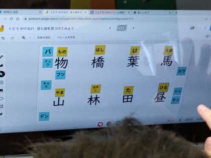 タブレット端末の中に、読み方だけが書かれているカードが用意されてあり、その読み方を見て、訓読みかなと思ったら、黄色に色を変えていくという学習をしました。