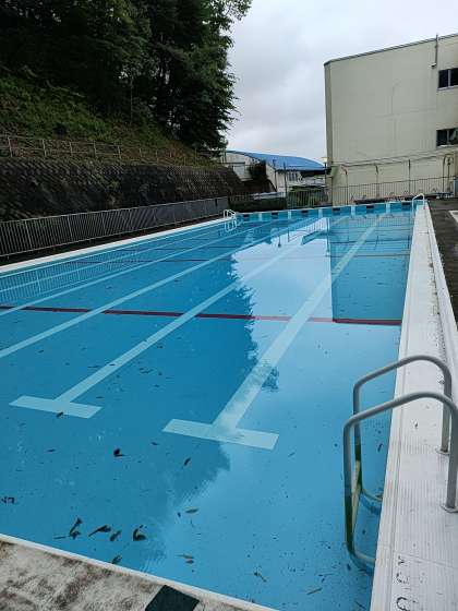だから小宮小のプールは、泳ぐ前に葉っぱを取り除くところから始めなければなりません。