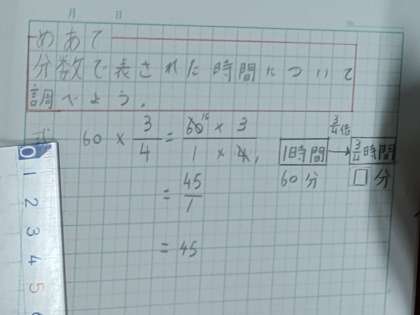 「1時間は60分ですが、では、4分の3時間は何分?」