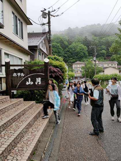 露天風呂に行く子たちは、みんなで集まって一緒に歩いていきます。