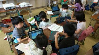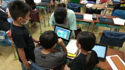タブレットを使って何やら楽しそうな活動をしていました。