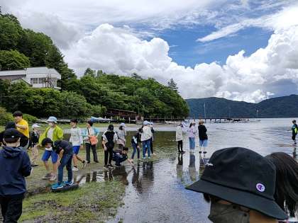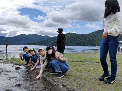 子どもたちは、とっても冷たい中禅寺湖の水に触れて、楽しんでいました^_^