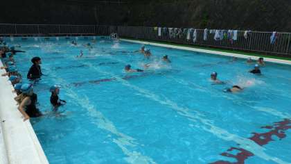 プール授業のときの約束、笛の合図、バディなどの確認をしてから、準備運動をして…シャワーへ。子どもたちの叫び声が聞こえるのも、久しぶりでした…。シャワー冷たかったですね…(_ _;)。