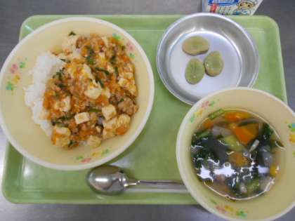 1年生が一生懸命むいてくれたそら豆は中がほくほくしていてみんなから大好評でした。