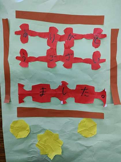 この子は、表面は「車いすを押したで賞」と題して、お礼の賞状を作ってくださり、裏面には折り紙で作った模様を貼って、その中に「ありがとうございました」
