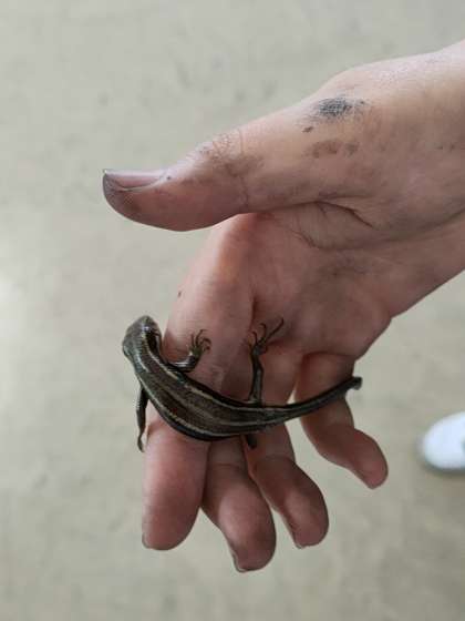 女の子が、とかげを手に持ち、持ってきてくれる小宮小。変わらない小宮小の子どもたちです(^o^)!