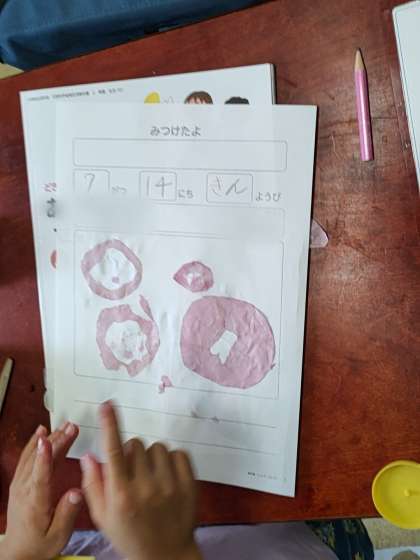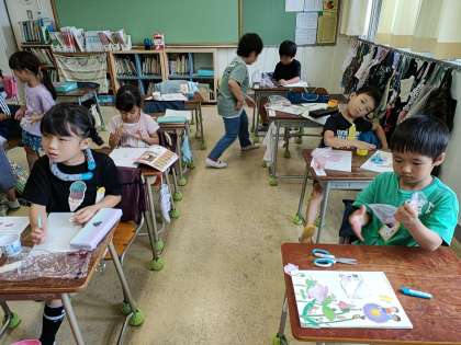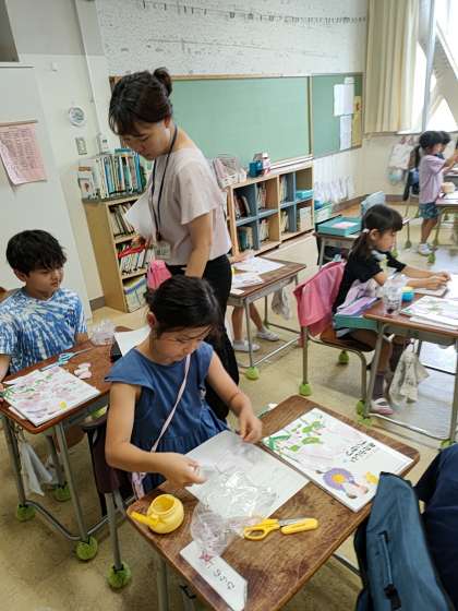 1年生の1つのクラスでは、生活科で「あさがおのおりぞめ」に挑戦していました^_^
