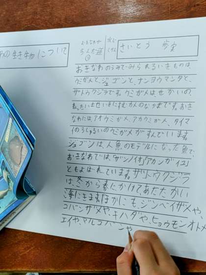 子どもたちは、「沖縄の〇〇」ということで、自分が調べたいテーマを決めて調べていました。
