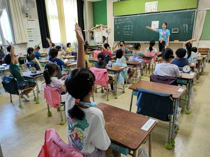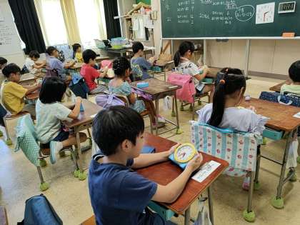1年生の1つのクラスでは、算数で「なんじ なんじはん」の学習をしていました。時計の学習ですね!