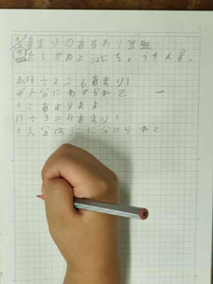 3年生の算数は「あまりのあるわり算」です。この単元はこれまで学習を続けてきて、今日が最後の時間となりました。