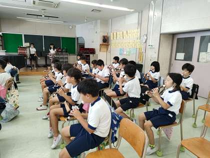4年生の音楽では、歌やリコーダーの演奏をしました。