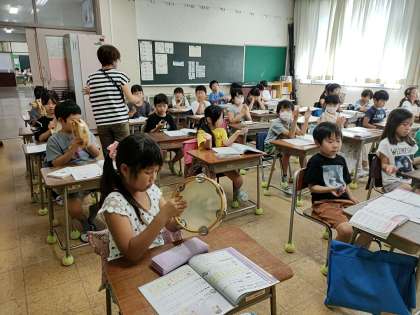 このとき、カスタネットとタンブリンは同じタイミングで叩くのではなく、「1」の時がタンブリン。「2」の時がカスタネットとして、交互に音を出していきました。