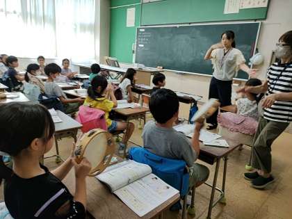 次にカスタネットとタンブリンが登場して、1列ずつリズム打ちをしていきました。