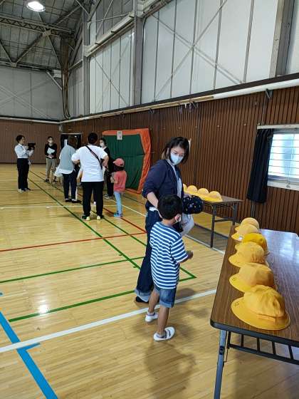 今日は就学時健康診断をおこないました。昨日お話したように、今年度は体育館を中心に検診をおこないました。