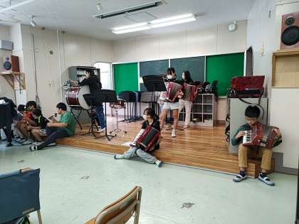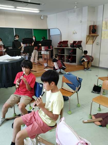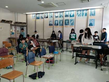 基本的には個人練習ですが、一部の楽器の人が合わせて演奏を始めると、それを聞きつけて、合わせて演奏していく子たちが増えていきます。