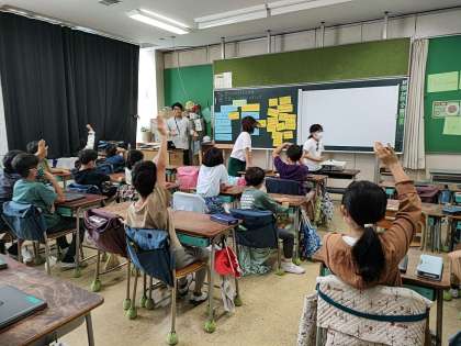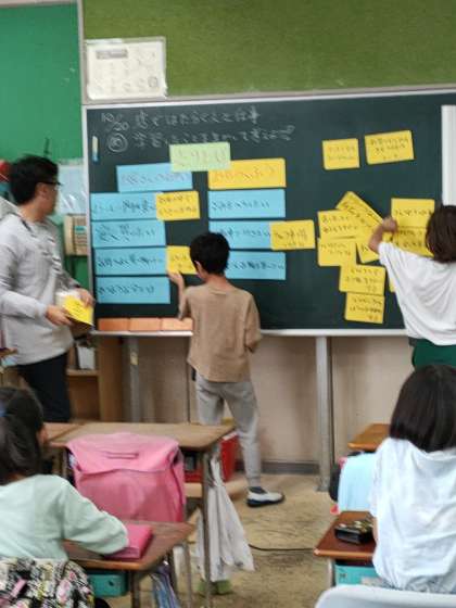 この学習では先週、地域のスーパーの見学に行って、とてもすごい集中力でメモを取ってきた子どもたち。