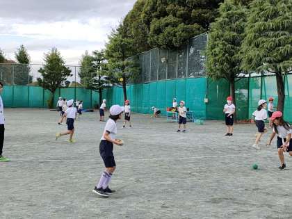 子どもたちは、安心してソフトボールくらいの大きさのボールを投げました。
