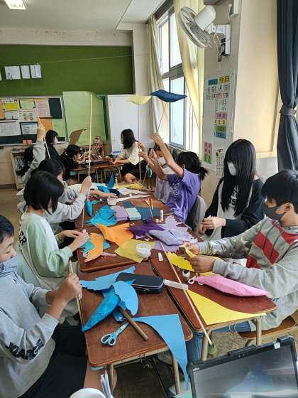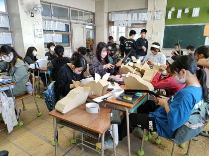 今日、6年生は自分たちの思いを文化祭で届けるべく、小道具作りを行いました。