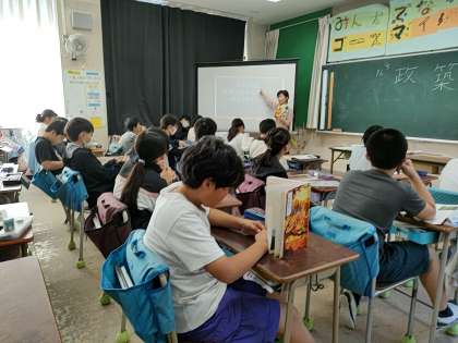 子どもたちは、みんなでマル読みしながら漢字などの読み方を確認していきました。