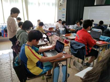 子どもたちは、タブレットで調べながら「あ、富士山だ!」「サグラダ・ファミリア!」と知っている世界遺産を見つけると、嬉しそうに発表していきました^_^