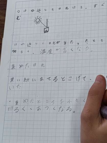 そして静かなだけでなく、光のまとめの授業で聞いたことをしっかりとノートに書いていました。