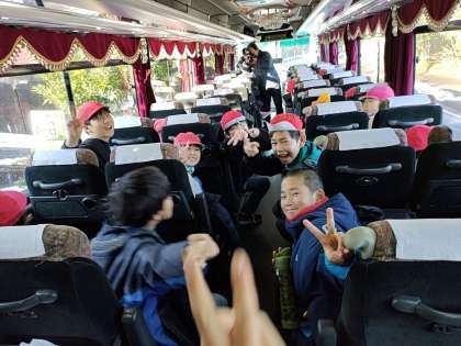 7時45分。バスは出発しました^_^!