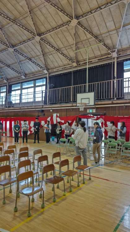 (6年生たちが下校して、最後は職員みんなで最終確認をします)