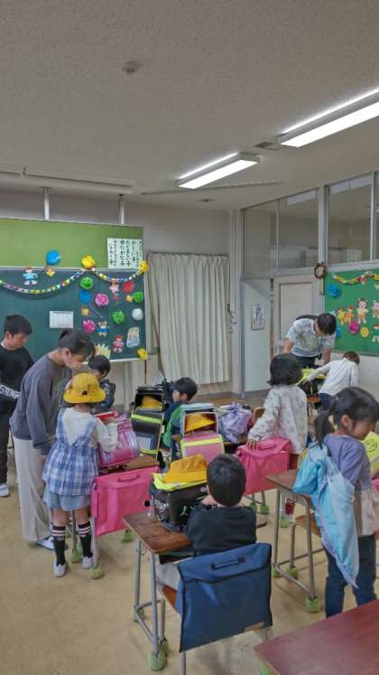 実際には机に大きくお名前が貼ってありますが、ホームページでは名前が読み取れる場合、できるだけ写真を加工して消しています。