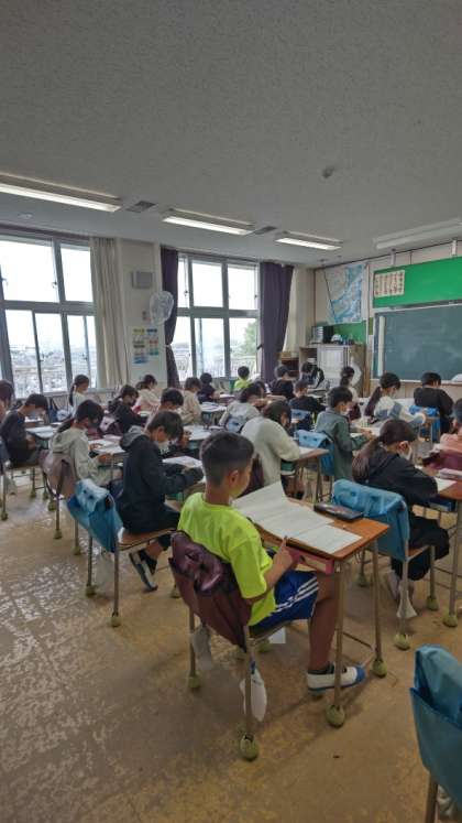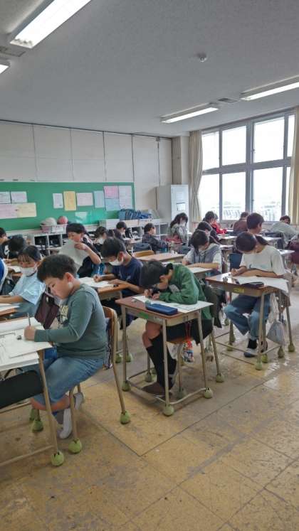 今日は6年生が1校時から「全国学力・学習状況調査」に取り組んでいます。「がんばって!」との思いで見守ります。
