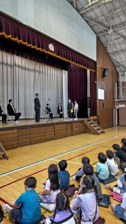 さあ、ここからは昨日の離任式の様子をお届けいたします。昨年度まで本校でご活躍いただいた皆様をお迎えして、短い時間でしたが楽しいひと時を過ごしました。