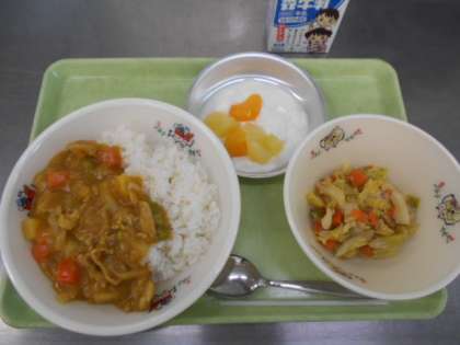 匂いで今日の給食はカレー!と気づいた児童も多かったようです。