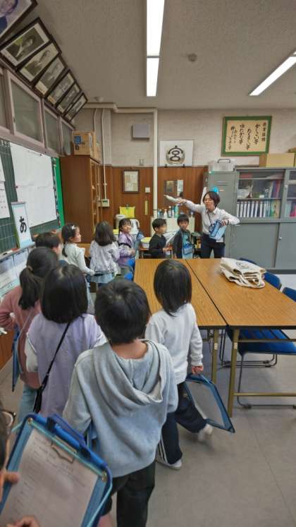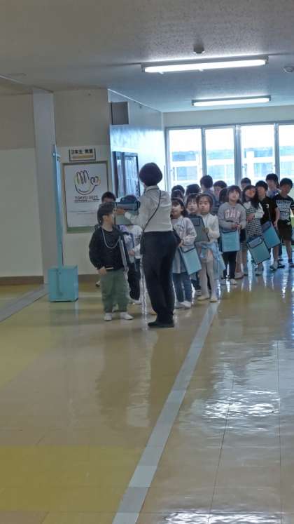 1年生を「学校たんけん」で案内する時のための下見をしています。校長室にも来てくれました。壁に貼られた歴代校長先生の写真が一番気になったようです。