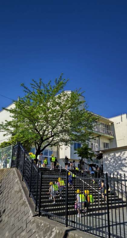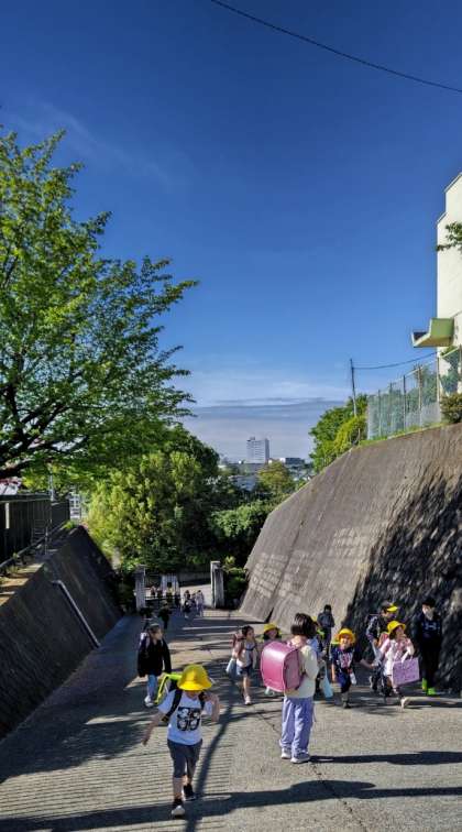 昨日の雨もすっかり上がり、今日は朝から快晴です。朝の挨拶もとても元気に聞こえます。でも、だんだんと暑くなるようです。昨日より10℃近く上がる予報です。体調管理がたいへんですね。