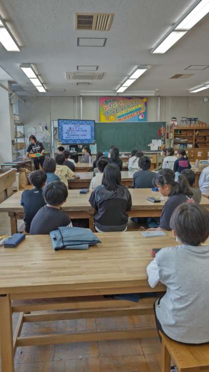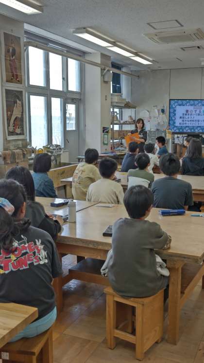 「音のする絵」に取り組んでいます。音楽を聴いて感じた形や色を表現します。「自分の感じたままでいいんだよ」と先生から。