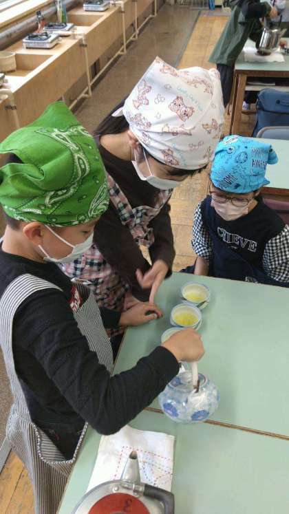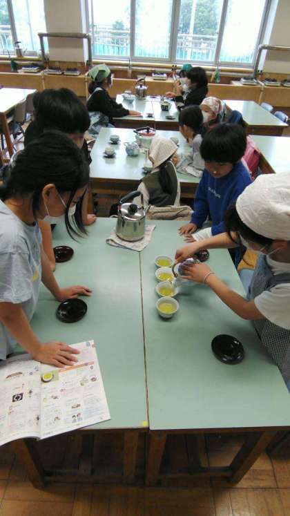 子どもたちの中には「にがぁ〜い!」と言って飲んでいる子もいましたが、みんなは自分たちで煎れたお茶にどんな感想をもったのでしょうね?