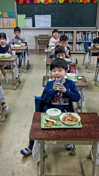 (米飯が多い給食ですが、こうしてパンの日もあります)