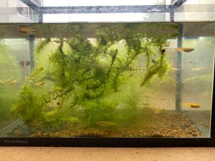 5月1日にメダカが卵を水草に産みつけた写真を掲載しました。その日から毎日水槽を見ていたのですが、なかなか赤ちゃんメダカを見つけることはできませんでした。「卵が育たなかったのかなぁ…」と思っていたところ、昨日、小宮小今年度最初の赤ちゃんメダカが1匹誕生しました! 今朝見ると新たに3匹が誕生していました。他にも卵の中に黒い小さな点が2個見える卵が複数個。(この黒い小さな2個の点は何でしょうね。)これから毎日が楽しみです。