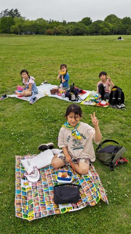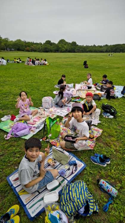 (今日はいつもより他の学校がとても少なく、原っぱも広々と使えました)