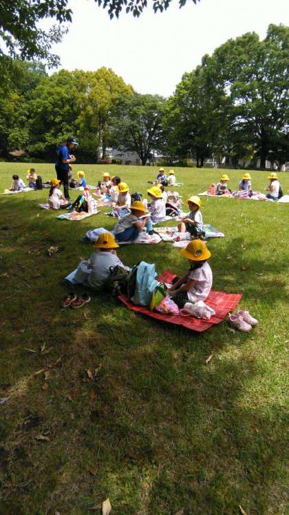 いつもよりはだいぶ早めですが、歩いて走り回って遊びまくった子どもたちにはちょうどいいようです。とってもとっても嬉しそうな笑顔がいっぱいです(#^^#)