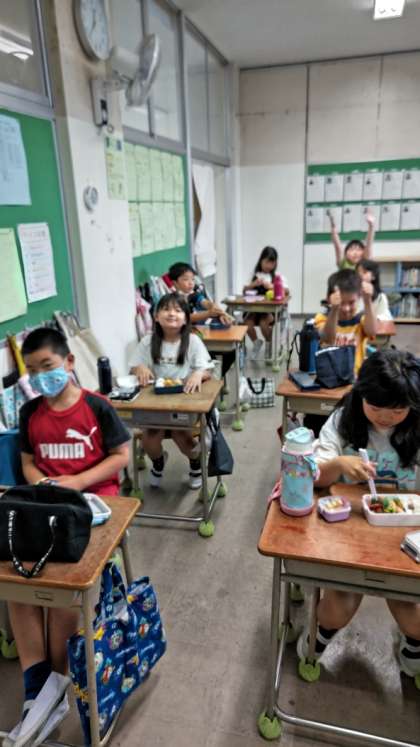今日は遠足が延期になったので、お弁当で「いただきます」をしました。給食も好きだけど、お弁当も好き!とのことです。