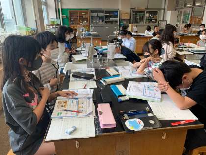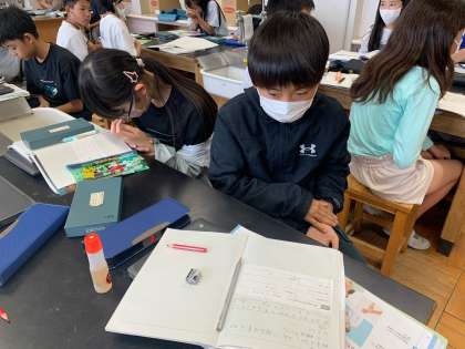 6月4日 理科室 6年生「心臓の拍動を感じてみよう」
