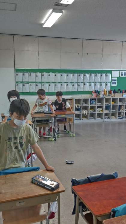 (机を戻して「お疲れさま」です。しっかり手を洗いましょう)