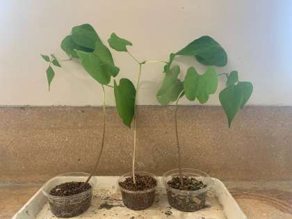 前時では、種子の中の子葉には、種子の発芽・成長に必要な養分があることが分かりました。その養分とはでんぷんで、よう素液の反応があることで分かります。発芽後しばらくすると、子葉はしぼんでしまい、よう素液の反応は見られませんでした。