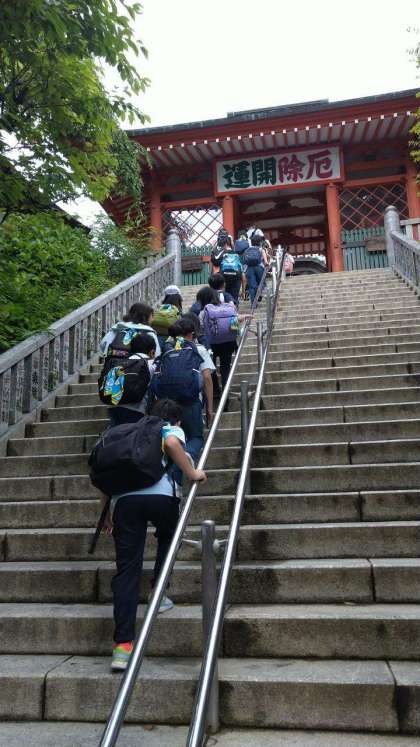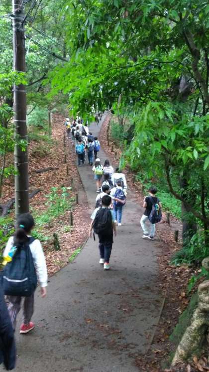 もうすぐ頂上に着く!と思ったら…階段があったり下り坂があったり…。子どもたちからは、まだなの?もう足がきつい…の声が多くなってきました(・・;