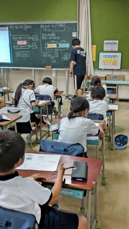 (テープ図の中で、わからない数を□であらわすと、何算すればいいかがわかります)