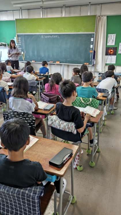 「ひびが入った水そう」というお話です。主人公がクラスで飼っているカメの水そうの水を取り替えた時に、水そうの角を蛇口にぶつけて、びびが入ってしまいます。