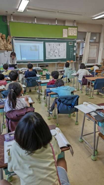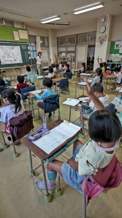 (ワークシートを使って、きつねの思いの変化を読み取ります)