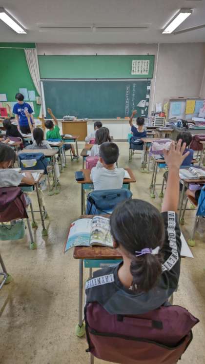(教科書のイラストには、夏の風景が描かれています)