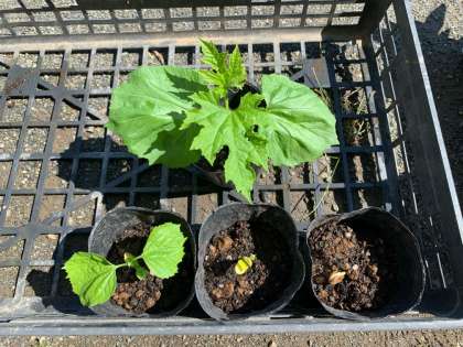 先月連休明けにゴーヤのたねをポットに7つ植えました。ゴーヤのたねは薄茶色で、ざらざらしていて、約1cmほどの大きさです。毎日楽しみに見ていたのですが、何日たっても芽が出ません。気づくと6月半ばになっていました。「たねに不具合があったのかな…」と半分諦めかけていました。でも、「もしかしたら…」とそのままにしていると…。 出ました! やっと芽が出ました! どうしてなかなか芽が出なかったのでしょうか。ゴーヤがよく育つ所はどんな所かを考えてみると…。日本では沖縄のような気温の高い所。ちなみにゴーヤの生産地はベトナムだそうです。なるほど! なぜだかわかりました!